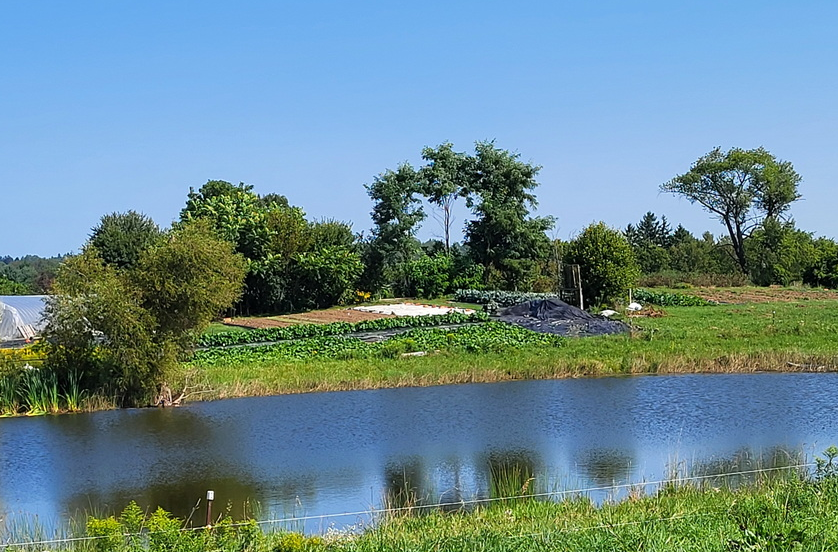 I bought the 20 acre farm with existing bank barn, house and outbuildings in 2007, added fencing, ponds, greenhouses, orchard, and equipped it for livestock, four season market gardening, fruit and berries. It was farmed conventional for 50 yrs before me by the Shewfelts, before that the Harris' family ran a mixed fruit and vegetable farm. First deeded in 1790. My vision is to be a link in the local food network, growing food, teaching, stewarding as a permaculture demonstration site. We understand that it is not too extreme to say the earth ecology is in crisis and abrupt changes are likely in the next decade. That said, the Great Lakes Basin is well suited to adapting to climate change and disruption in food security and energy supply. Hence our focus is on farming in a resilient way and contributing to the local community as best we can.